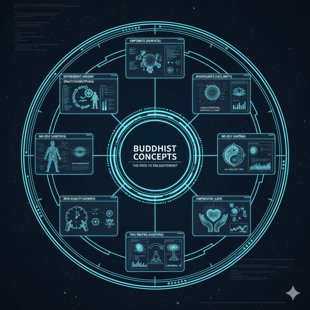 A companion post provides a Glossary of essential terms to understand AI, Buddhism, and Gnosticism. These terms are italicized.