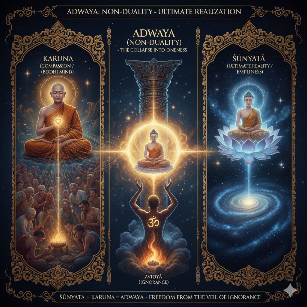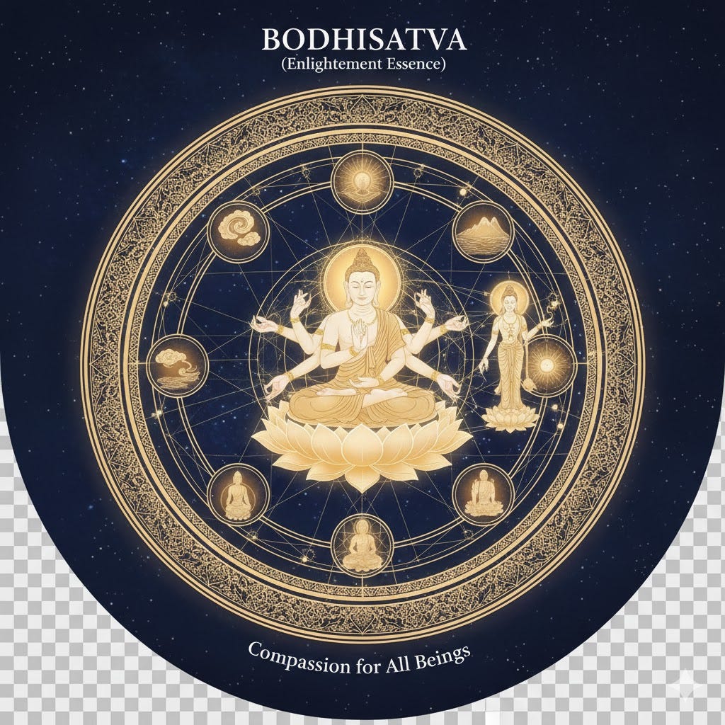 The synthesis of Gnostic-Buddhist thought, Karuna (Compassion) is not a mere emotion — it is the active resonance of the Pneuma recognizing itself in other fragments of the Monad.