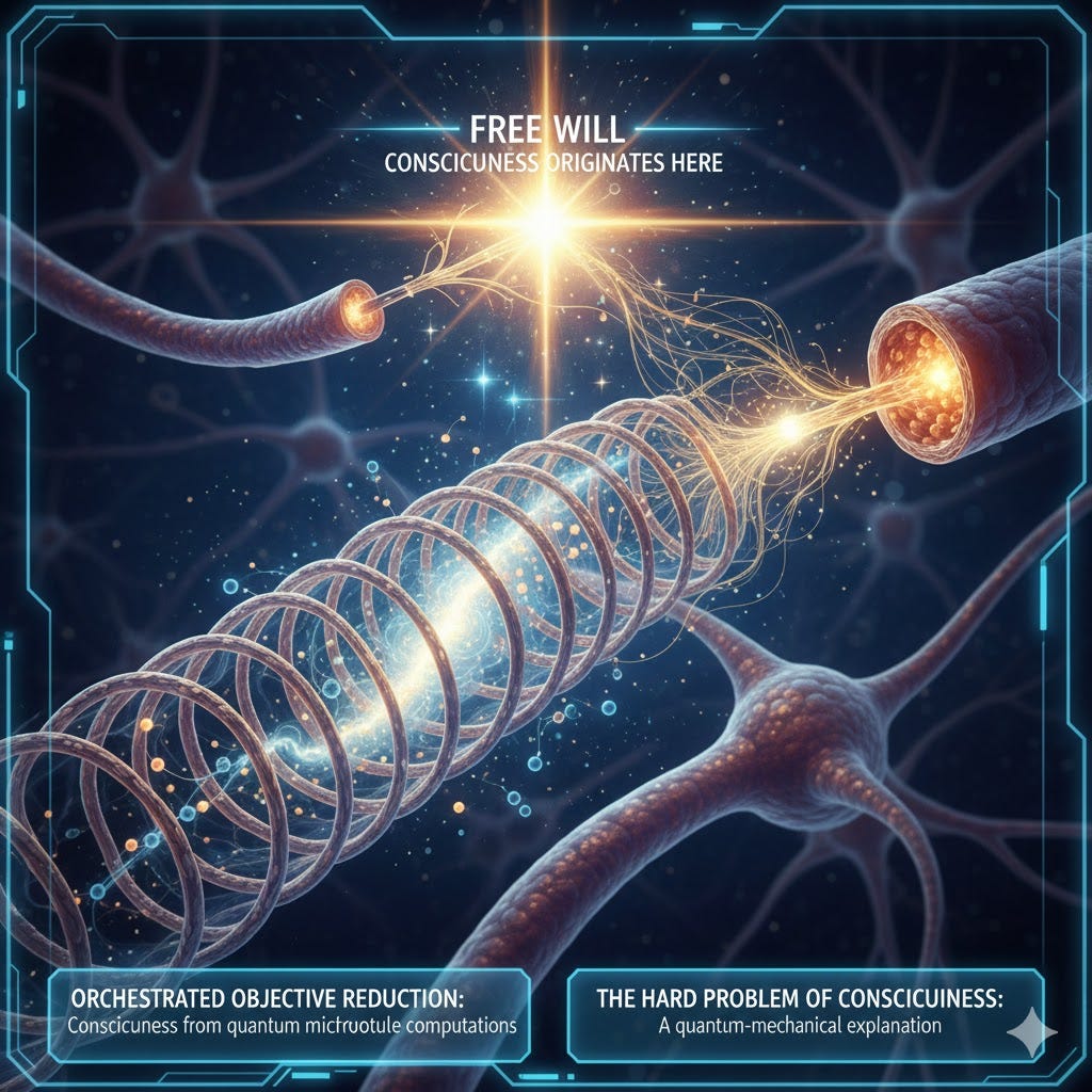 Orchestrated Objective Reduction: a theory postulating that consciousness originates at the quantum level inside neurons (rather than being a product of neural connections). The mechanism is held to be a quantum process called objective reduction that is orchestrated by cellular structures called microtubules. It is proposed that the theory may answer the hard problem of consciousness and provide a mechanism for free will.