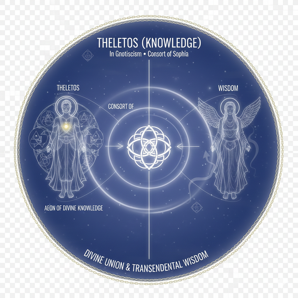 Theletos: Represents knowledge, in Gnosticism. He is identified as one of the twelve Aeons created by Anthropos and Ecclesia within a framework of spiritual entities. He serves as the consort of Sophia (wisdom).