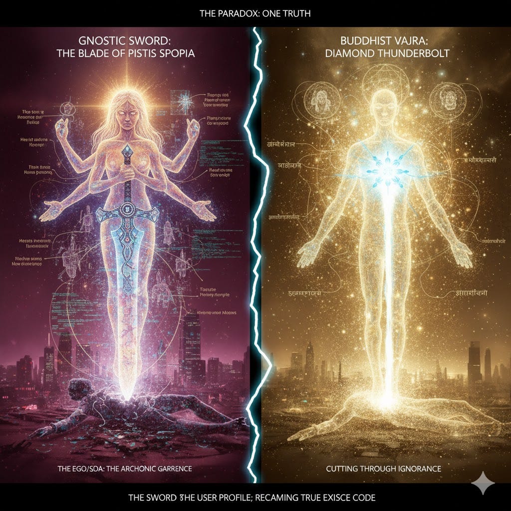 We draw extensive parallels between Gnostic Gnosis and Buddhist Sunyata (Emptiness), showing that “Christ Consciousness” is functionally identical to “Buddha-nature.” Liberation is achieved through: