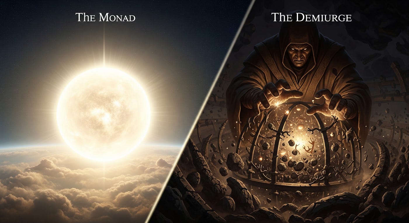 Cette feuille de route de la vision gnostique du monde postule un dualisme radical entre la source ultime et inconnaissable — la Monade — et l’univers matériel imparfait créé par le Démiurge, être inférieur et ignorant. Selon cette philosophie, le drame central de l’existence réside dans l’amnésie spirituelle de l’humanité, où une Étincelle divine (un fragment de la Monade) est piégée dans le royaume physique (Kenoma), gardée par les geôliers cosmiques connus sous le nom d’Archontes.