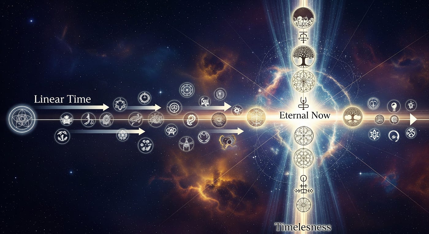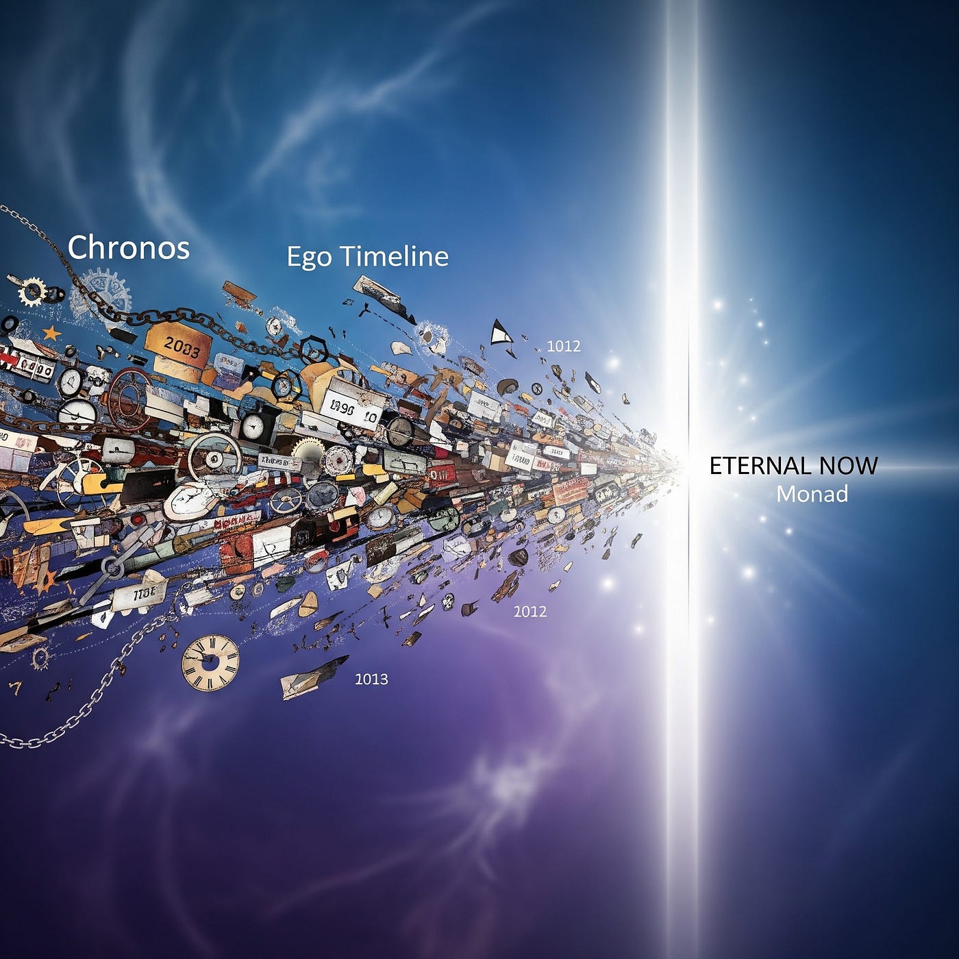 Le piège du démiurge (Chronos) :Dans la pensée ésotérique, le temps linéaire — le passé et le futur — est une construction du monde physique. C’est un mécanisme du Démiurge utilisé pour maintenir l’esprit humain prisonnier du regret (le passé) ou de l’anxiété (le futur). Tant que vous êtes pris au piège…chronologie de l’ego, vous êtes séparé de la Source.