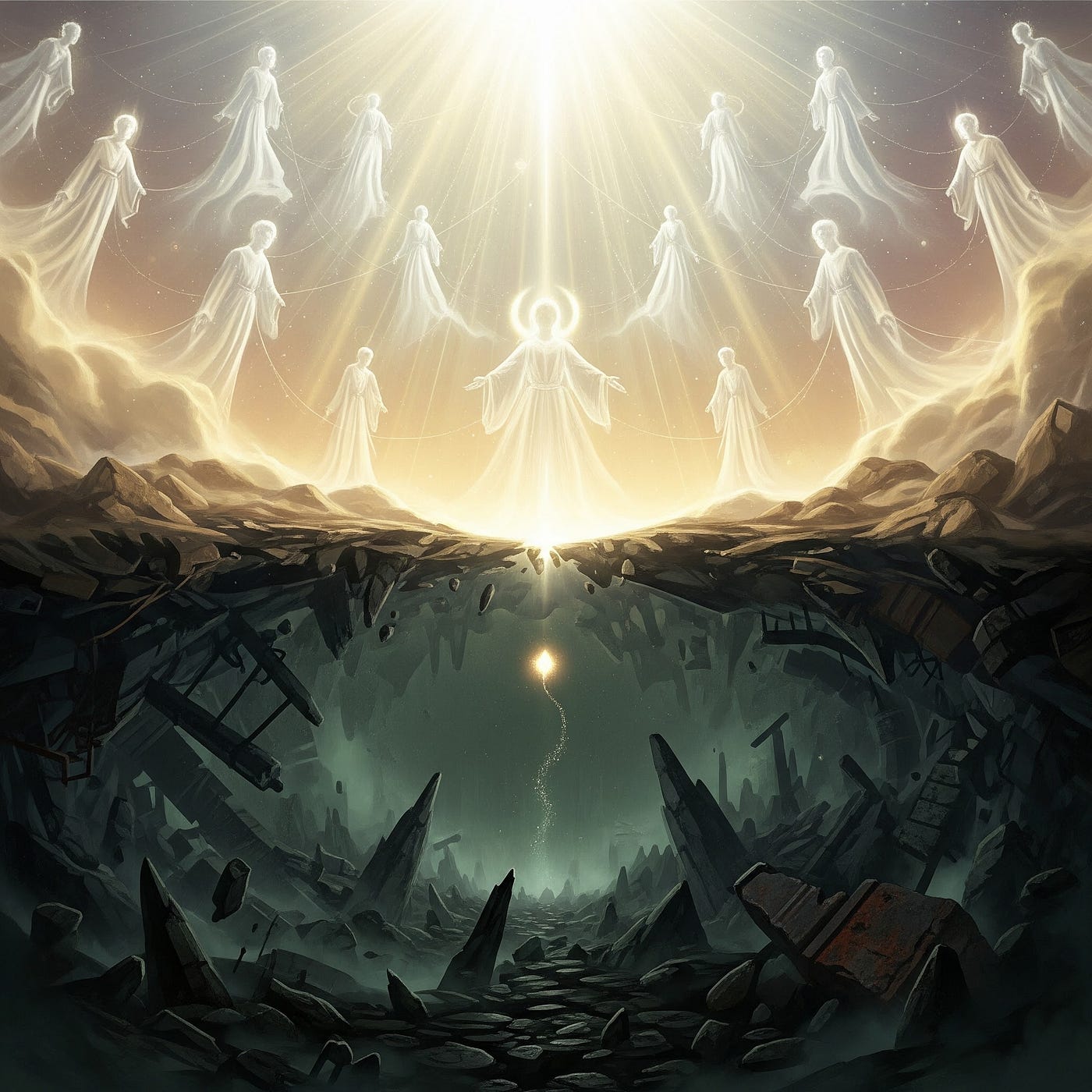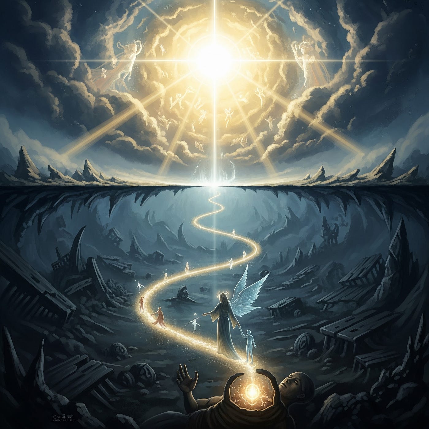 Le piège :Les Archontes s’efforcent de maintenir l’« Étincelle Divine » (l’âme humaine) prisonnière du monde physique en perpétuant l’illusion du monde matériel et la fausse autorité du Démiurge.