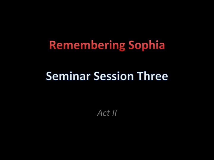 Seminar I Session 3: The Story of Sophia - Act Two