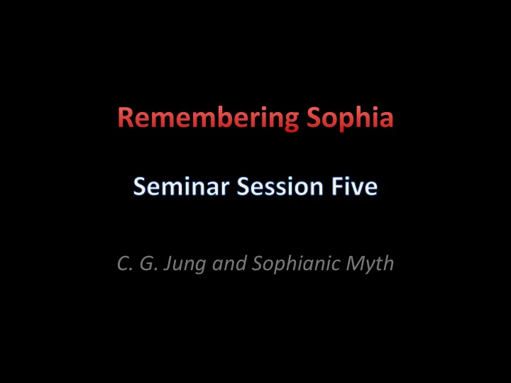 Seminar I Session 5: C. G. Jung's Sophianic Vision