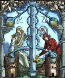 The cosmos, according to Paracelsus, contains the divine light or life, but this holy essence is enmeshed in a mechanical trap, presided over by a kind of demiurge, named by Paracelsus Hylaster (from hyle, "matter," and astrum, "star"). The cosmic spider-god has spun a web within which the light, like an insect, is caught, until the alchemical process bursts the web. The web is none other than the consensus reality composed of the four elements of earth, water, fire and air, within which all creatures exist. The first operation of alchemy therefore addresses itself to the breaking up (torturing, bleeding, dismembering) of this confining structure and reducing it to a condition of creative chaos (massa confusa, prima materia). From this, in the process of transformation, the true, creative binaries emerge and begin their interaction designed to bring about the coniunctio or alchemical union. In this ultimate union, says Jung, the previously confined light is redeemed and brought to the point of its ultimate and redemptive fulfillment.