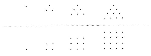 In another treatise (Qu. in Gen., iii. 39) we get some further interesting information concerning the 50. Philo speaks of two series, which he calls triangles and squares, namely 1, 3, 6, 10, and 1, 4, 9, 16. At first sight it is difficult to discover why Philo should call the first series of numbers triangles, but it has occurred to me that he had in mind some such arrangement as the following.