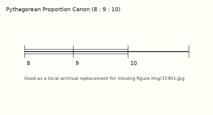 320:1 The sesquioctave. In areas 8 is half of 16, and 9 of 18; while in a proportional measuring-rod or canon of 27 units, intervals of 8, 9, and 10 units succeeding one another complete the 27.